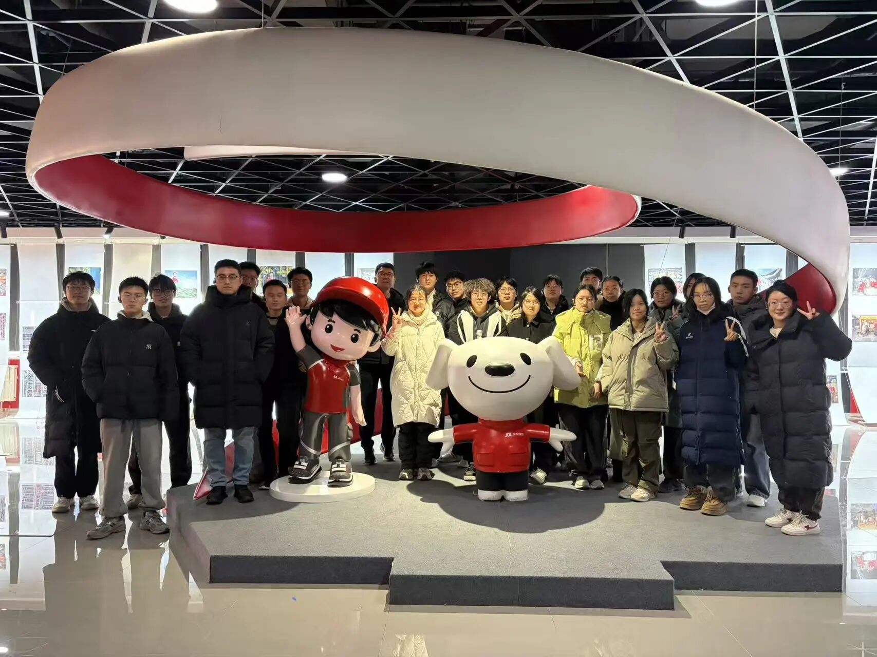 行程尾声,师生同京东吉祥物joy合影,为这次实践之旅定格下一张张满载收获的笑脸。
