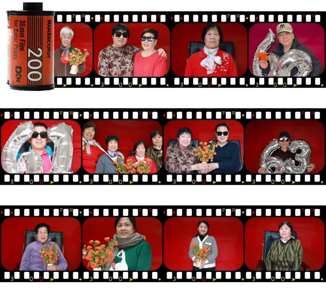 随后,长者们依次来到精心布置的拍摄区,选择心仪的道具进行拍摄。有的长者手捧数字,在镜头前展露自豪的微笑,记录下属于自己年龄的印记;有的夫妻并肩而坐,幸福地握着对方的手,记录下相濡以沫的美好爱情;还有的几位好友并肩而立,记录下十几年不变的深厚友谊。社工与长者们亲切互动,用心为每位长者打造专属“大片”。