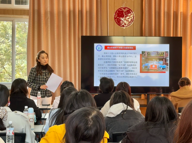 参访首站,陈克雨所长介绍了机构的发展脉络:德润十方社工事务所成立于2018年,是房山区民政局审批的非营利性社会组织,配套有爱心志愿者团队(2017年成立,现有注册志愿者476人、服务时长超8.5万小时)及文化传媒公司,形成了“志愿+社工+文化服务”的多元布局。